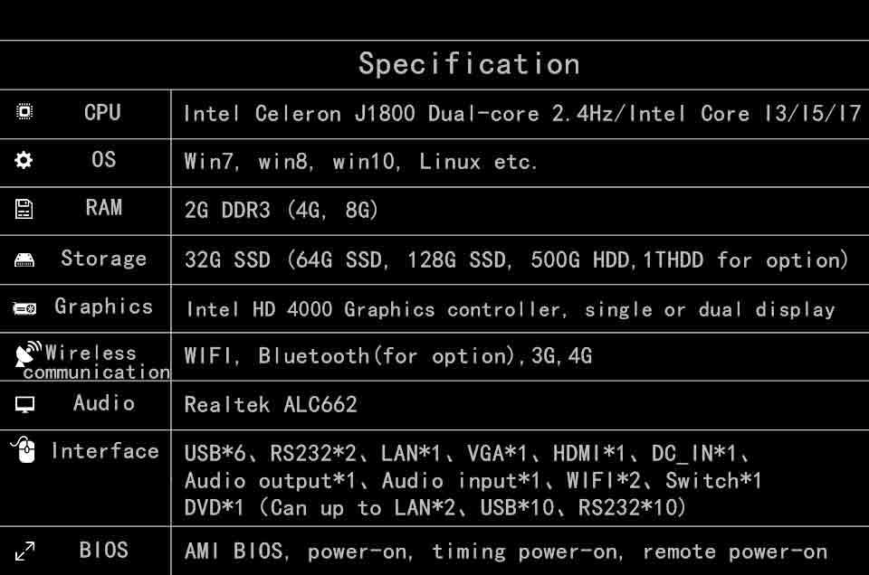 18.5-inch industrial all-in-one PC specification (SYG series)