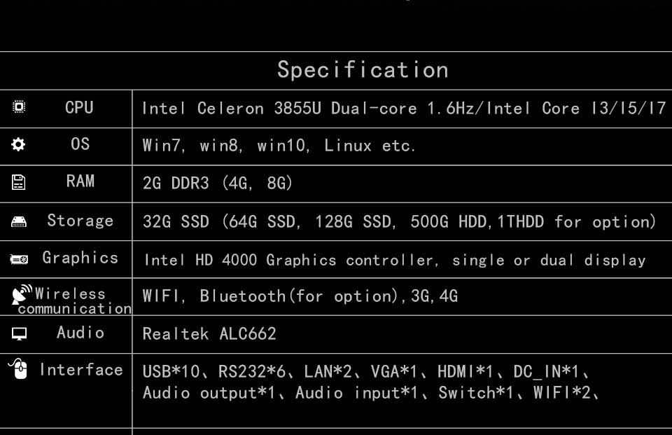 18.5-inch industrial all-in-one PC specification (SYG series)