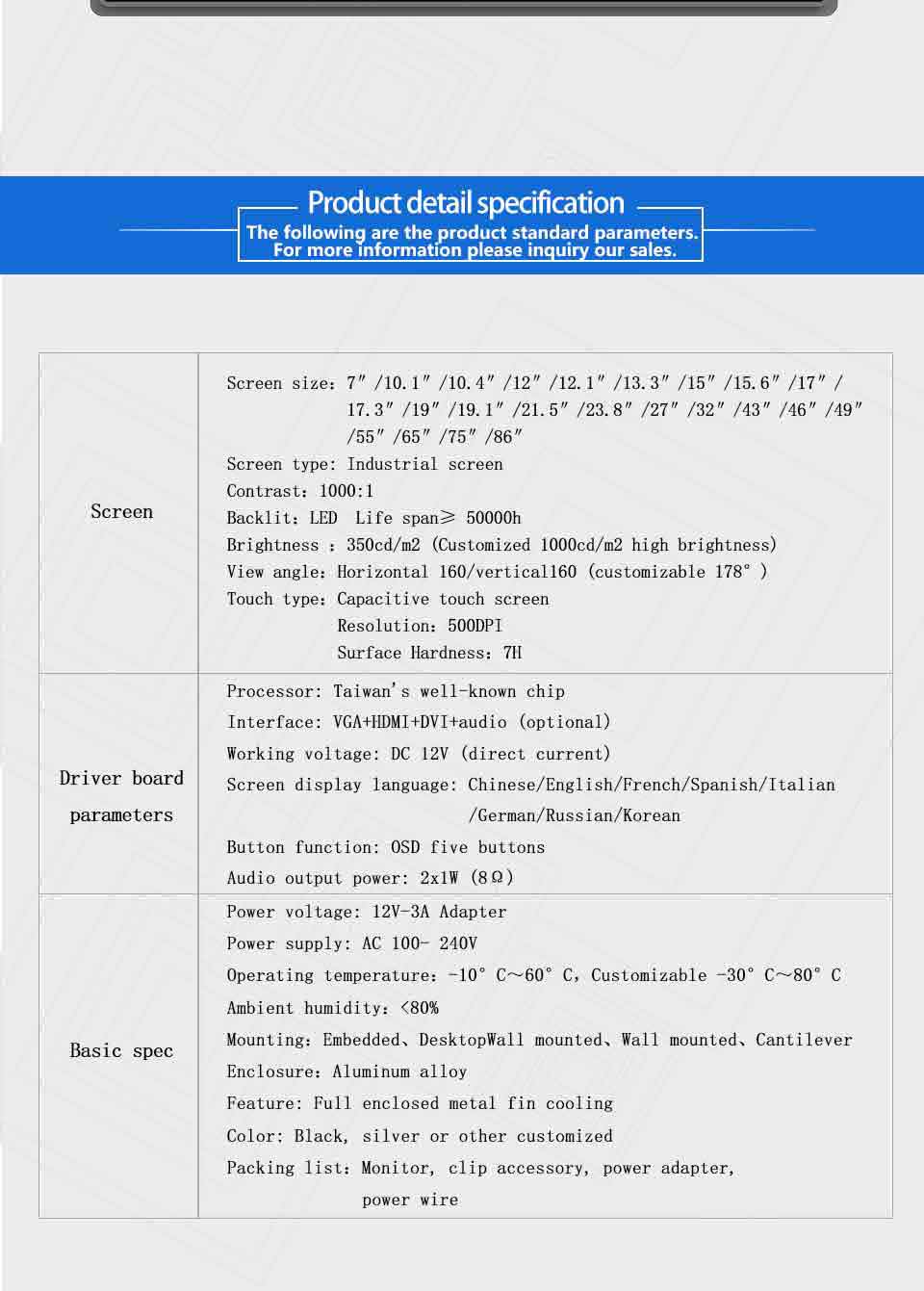 | Power performance | AV 100-240V AC power is converted to DC 12V DC power via external power adapter 50-60Hz | |